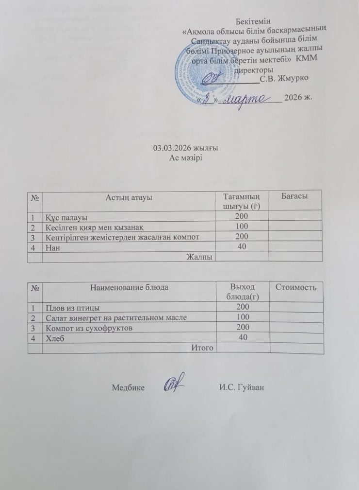 Коммунальное государственное учреждение "Общеобразовательная школа села Приозёрное отдела образования по Сандыктаускому району управления образования Акмолинской области"