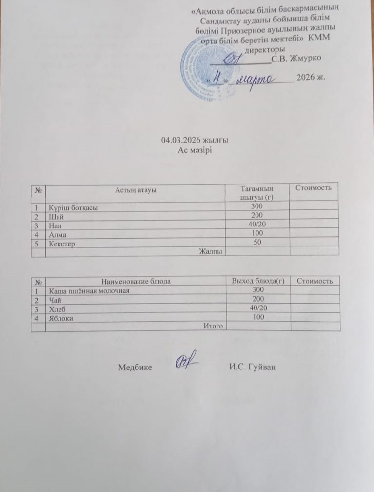 Коммунальное государственное учреждение "Общеобразовательная школа села Приозёрное отдела образования по Сандыктаускому району управления образования Акмолинской области"