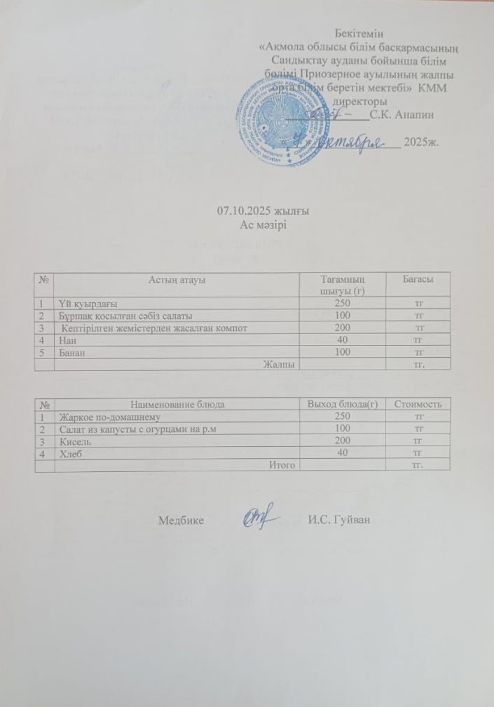 Коммунальное государственное учреждение "Общеобразовательная школа села Приозёрное отдела образования по Сандыктаускому району управления образования Акмолинской области"