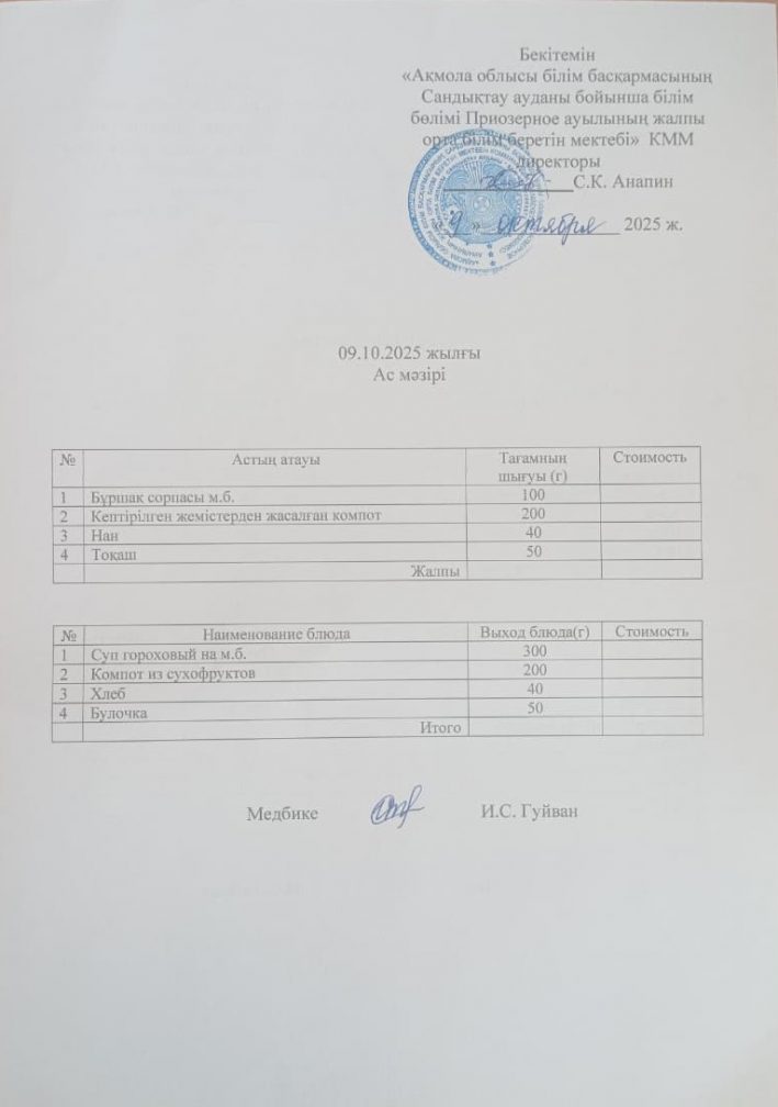 Коммунальное государственное учреждение "Общеобразовательная школа села Приозёрное отдела образования по Сандыктаускому району управления образования Акмолинской области"