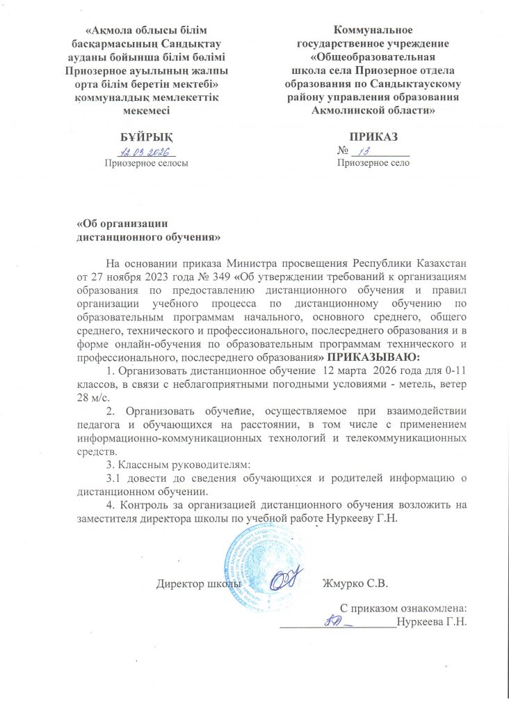 Коммунальное государственное учреждение "Общеобразовательная школа села Приозёрное отдела образования по Сандыктаускому району управления образования Акмолинской области"
