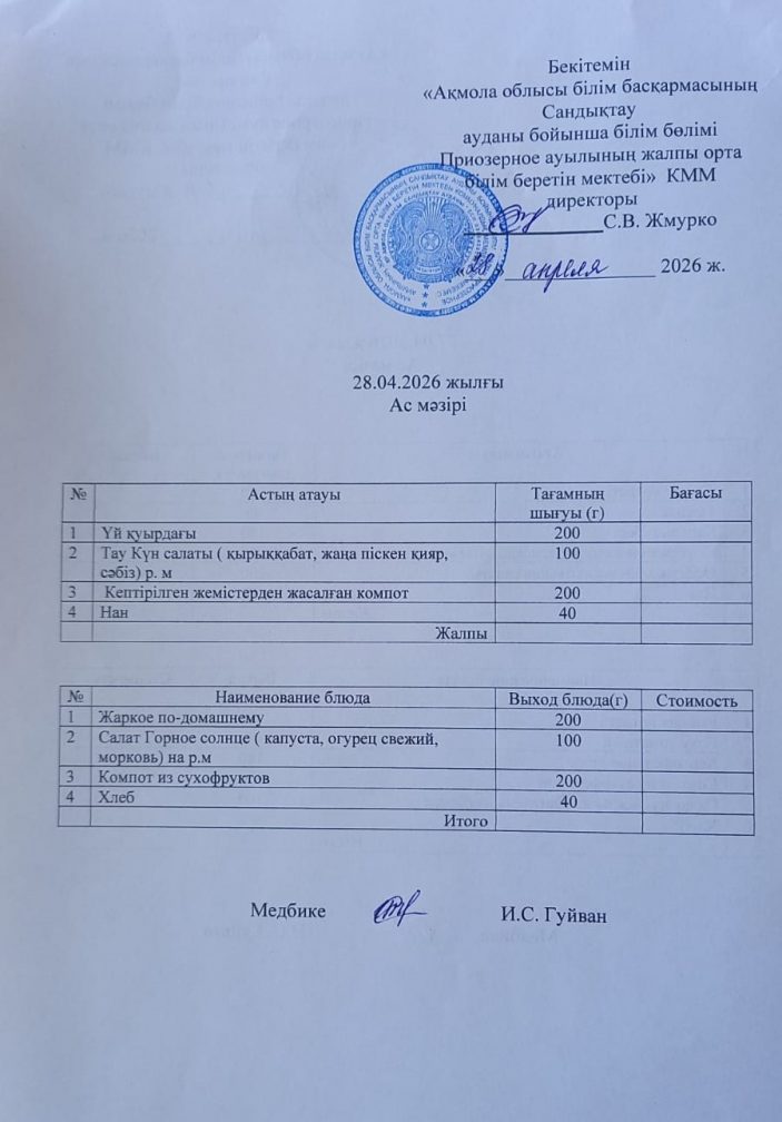 Коммунальное государственное учреждение "Общеобразовательная школа села Приозёрное отдела образования по Сандыктаускому району управления образования Акмолинской области"