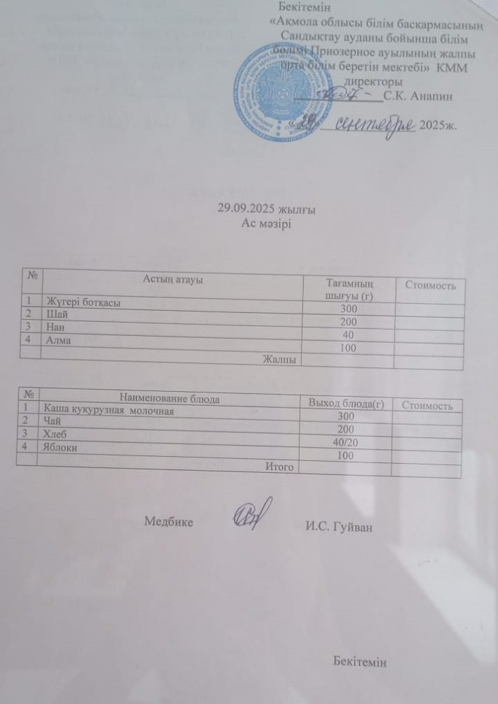 Коммунальное государственное учреждение "Общеобразовательная школа села Приозёрное отдела образования по Сандыктаускому району управления образования Акмолинской области"