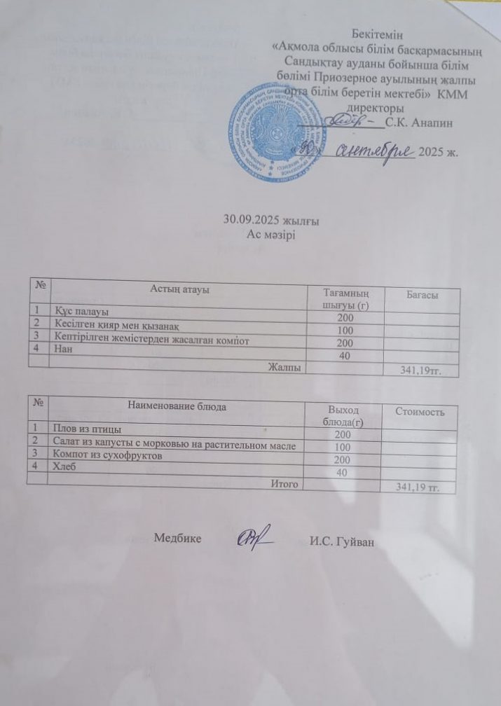 Коммунальное государственное учреждение "Общеобразовательная школа села Приозёрное отдела образования по Сандыктаускому району управления образования Акмолинской области"