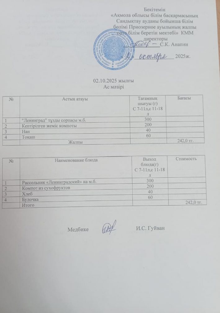 Коммунальное государственное учреждение "Общеобразовательная школа села Приозёрное отдела образования по Сандыктаускому району управления образования Акмолинской области"