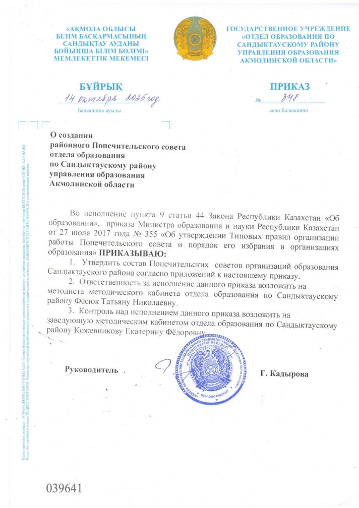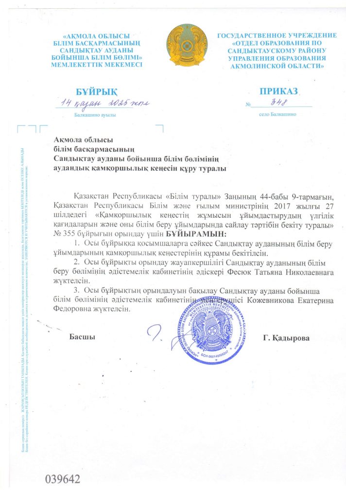 Қамқоршылық кеңесін құру туралы бұйрық
