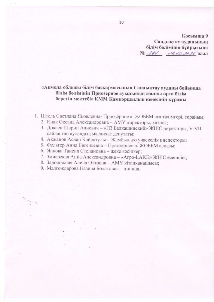 Коммунальное государственное учреждение "Общеобразовательная школа села Приозёрное отдела образования по Сандыктаускому району управления образования Акмолинской области"
