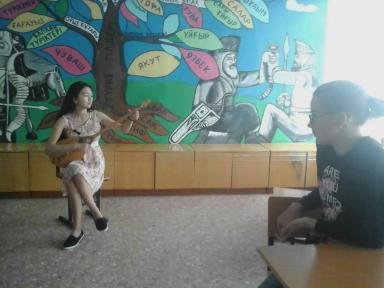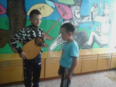 Дети читали стихотворения о народном инструменте казахского народа, Кляцких Валерия и Тулегенова Гаухар исполнили кюи, показали желающим несколько правил игры на домбре.